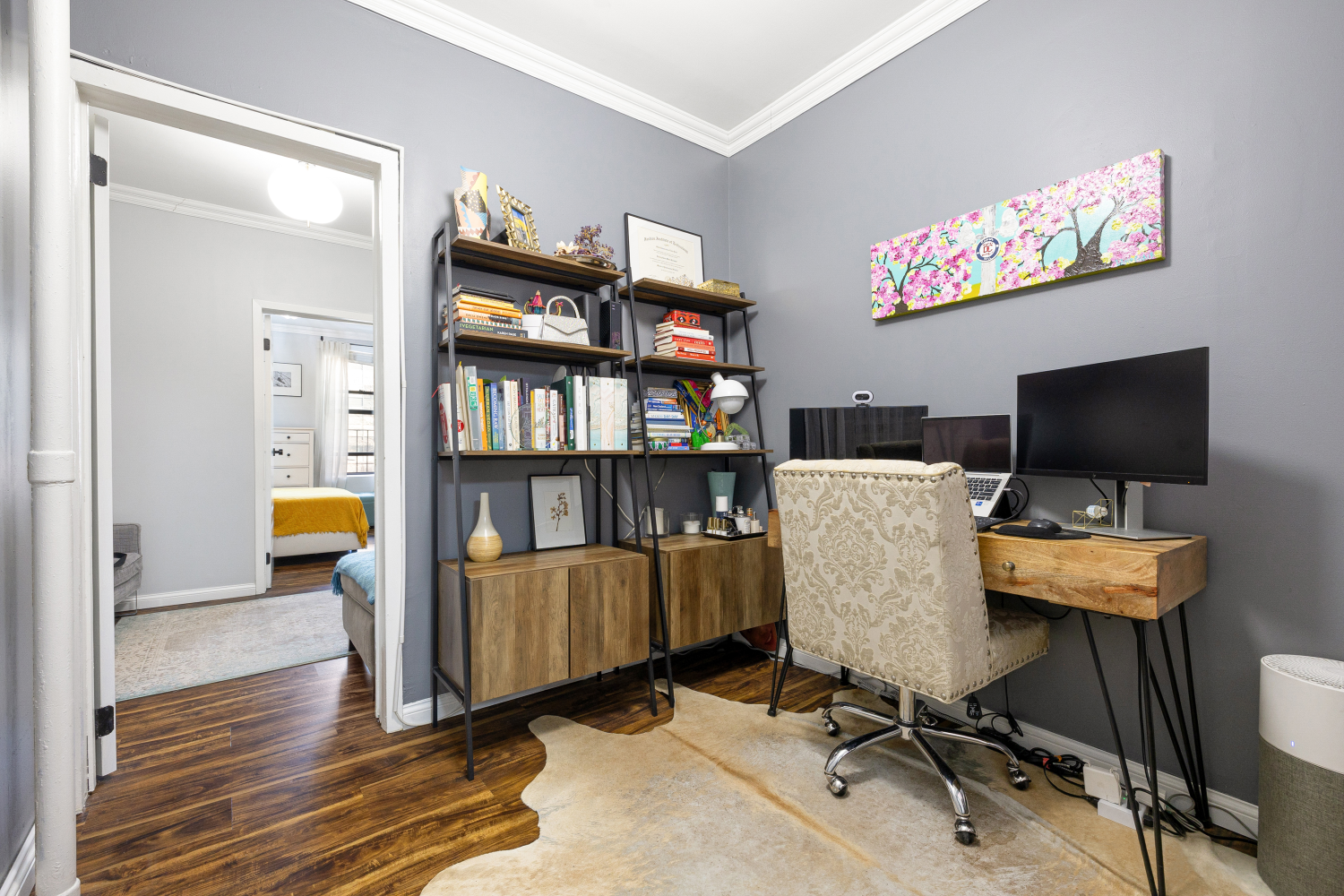 No board application fees. Welcome to this charming railroad-style 1-bedroom plus office, offering a spacious king-sized bedroom, a large eat in kitchen, separate office space, and a renovated bathroom. This north-facing unit is filled with natural light from windows in every room, creating a bright and spacious atmosphere. The living room features a custom-made couch designed to fit the space perfectly, maximizing comfort and functionality. The apartment is conveniently only one flight up and can be delivered furnished or semi-furnished. Located just 5 minutes from the 6 train, this home offers easy access to the best of NYC. Enjoy being surrounded by great restaurants, nightlife, and just minutes from Central Park. Don't miss out on this unique and flexible living space in a prime location-schedule a viewing today!